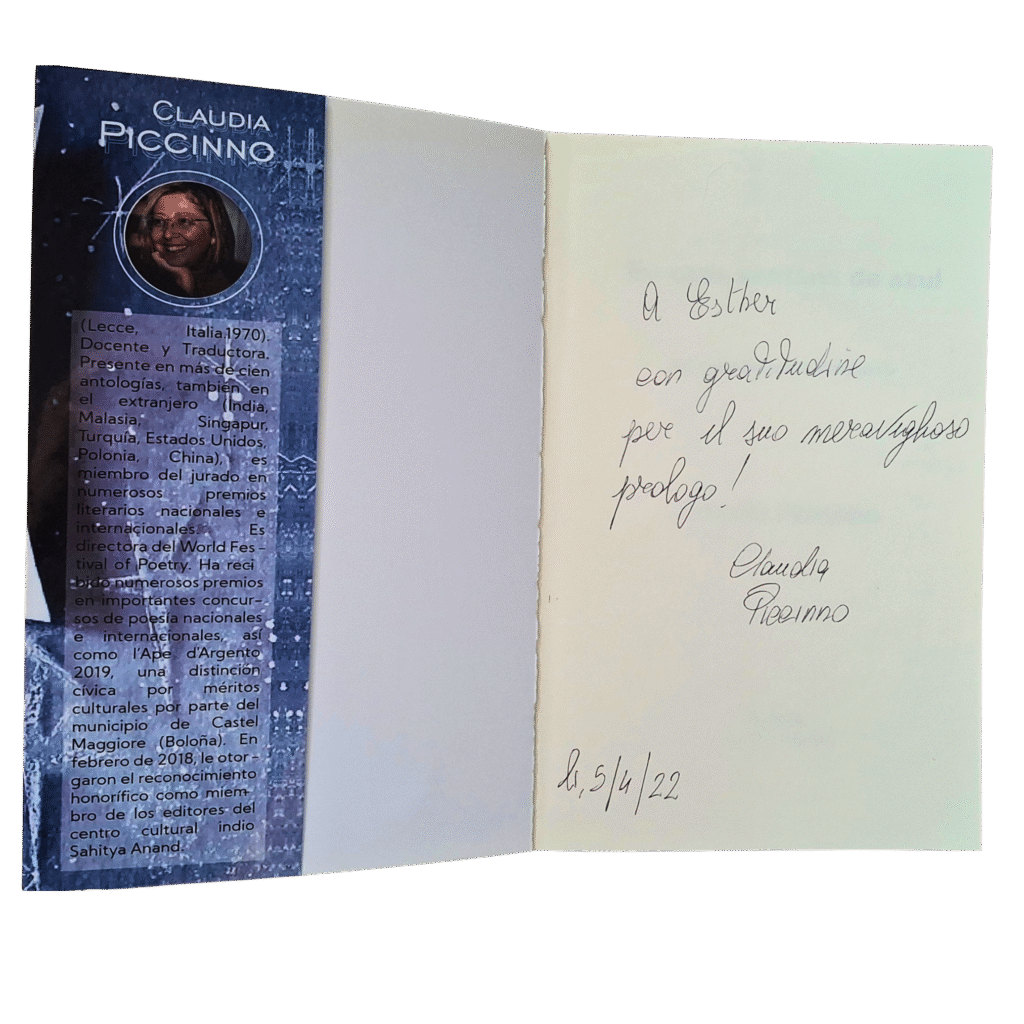 Dedicatoria de la autora Claudia Piccinno:
